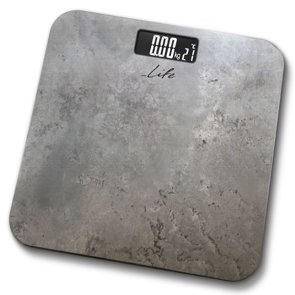 Η ηλεκτρονική ζυγαριά μπάνιου LIFE BSC-001, έχει μοντέρνο σχεδιασμό με μεγάλη επιφάνεια 30x30 cm, με όψη μάρμαρου. Προσφέρει υψηλή ακρίβεια στη μέτρηση, χάρη στον υψηλής τεχνολογίας αισθητήρα, ενώ διαθέτει και πρακτική ένδειξη θερμοκρασίας του χώρου. Επιπλέον, διαθέτει ψηφιακή οθόνη LCD με μεγάλα και ευανάγνωστα λευκά LED ψηφία, ειδοποίηση χαμηλής στάθμης μπαταρίας και υπερφόρτωσης (άνω 150kg). Ενεργοποιείται αυτόματα (step-on-automatic) και μπορείτε να εναλλάξετε εύκολα την μονάδα μέτρησης σε kg ή lb, με το πλήκτρο στο κάτω μέρος της ζυγαριάς.