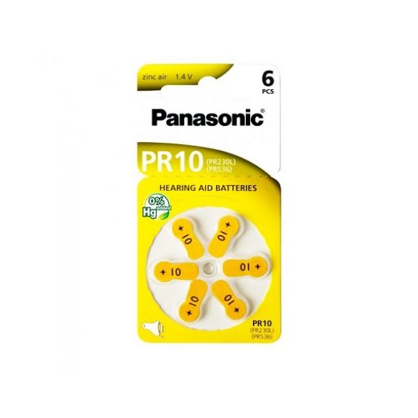 PANASONIC μπαταρίες ακουστικών βαρηκοΐας PR10, mercury free, 1.4V, 6τμχ