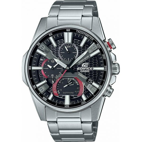 Το Casio EQB-1200D-1AER είναι ένα smartwatch με εναλλάξιμο λουράκι και μπορεί να συνδεθεί με κινητό Android ή iOS. Μπορεί να χρησιμοποιηθεί για κολύμβηση στη θάλασσα.