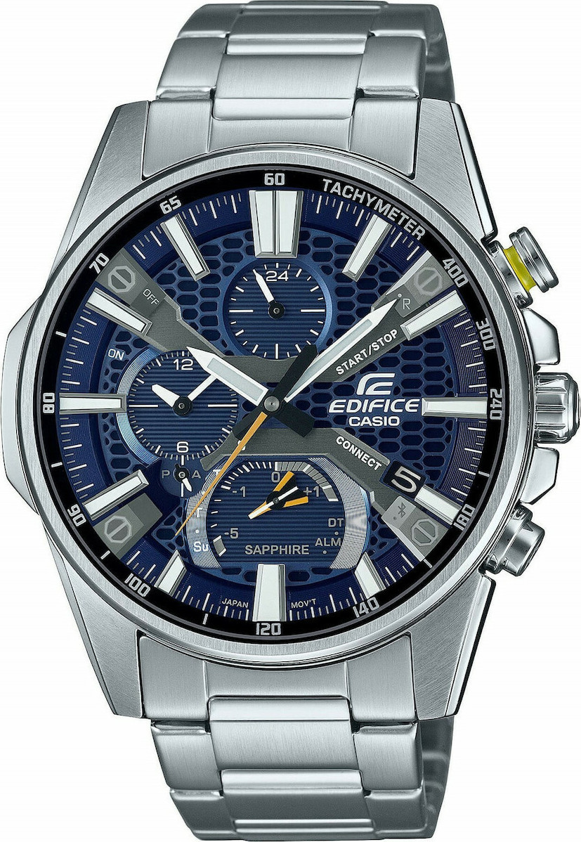 Το Casio EQB-1200D-2AER είναι ένα smartwatch με εναλλάξιμο λουράκι και μπορεί να συνδεθεί με κινητό Android ή iOS. Μπορεί να χρησιμοποιηθεί για κολύμβηση στη θάλασσα.
