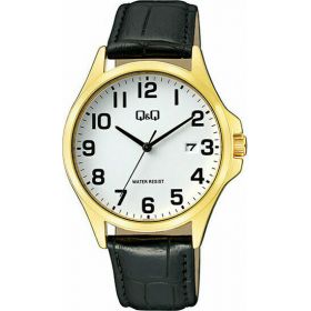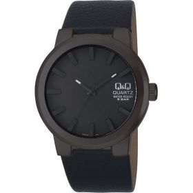 Q&Q Ρολόι με Δερμάτινο Λουράκι σε Μαύρο χ...
