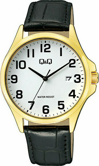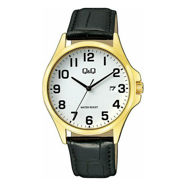 Q&Q Ρολόι με Δερμάτινο Λουράκι σε Μαύρο χρώμα